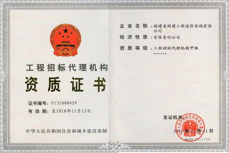 福建省閩建工程造價(jià)咨詢有限公司成立于1993年,原隸屬福建省建設(shè)委員會(huì),2001年脫鉤改制為有限責(zé)任公司,公司注冊資本1200萬元,是一家具有甲級(jí)工程招標(biāo)代理資質(zhì)(證書編號(hào):F135000429)、甲級(jí)工程造價(jià)咨詢資質(zhì)(證書編號(hào):甲150135000084)、政府采購代理資質(zhì)、預(yù)備級(jí)中央投資項(xiàng)目招標(biāo)代理機(jī)構(gòu)資質(zhì)(證書編號(hào):ZYTZ-C2013239)、丙級(jí)工程資質(zhì)(證書編號(hào):工咨丙11520160008)的綜合性工程咨詢服務(wù)單位。能承擔(dān)各類建設(shè)項(xiàng)目的工程招標(biāo)代理、工程造價(jià)咨詢...